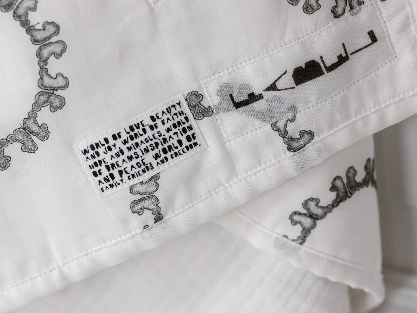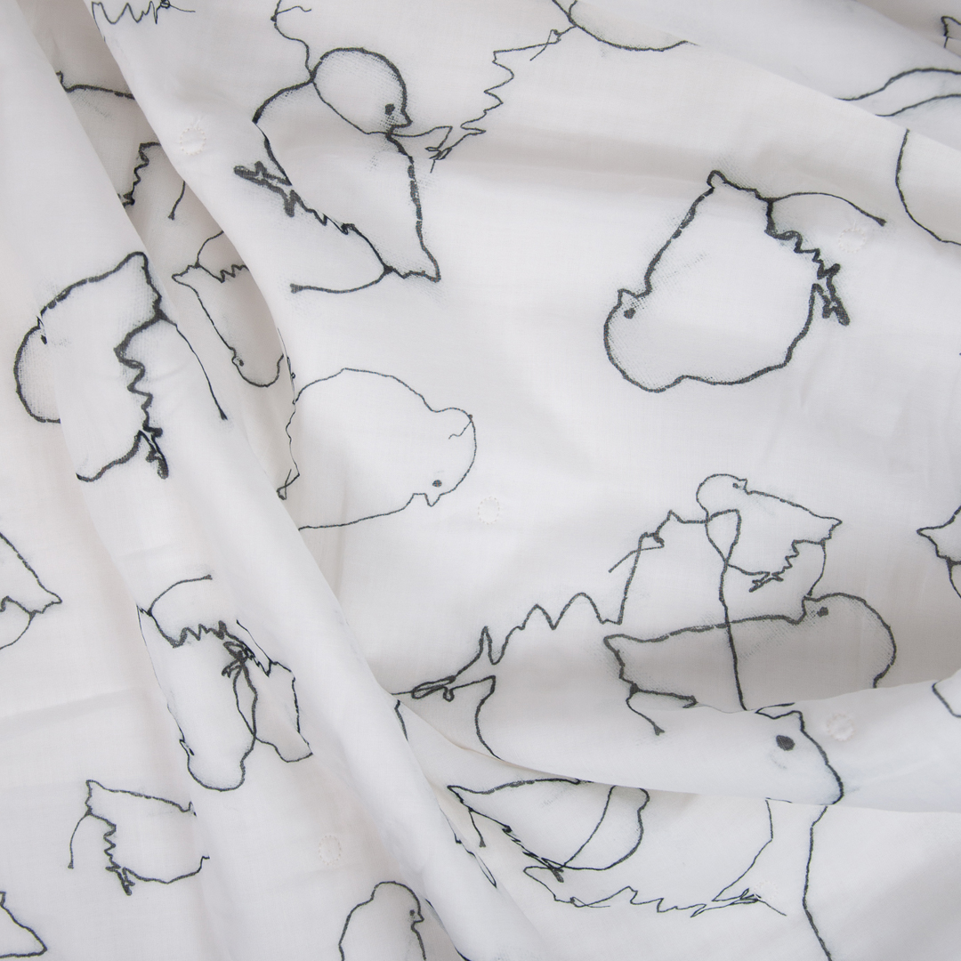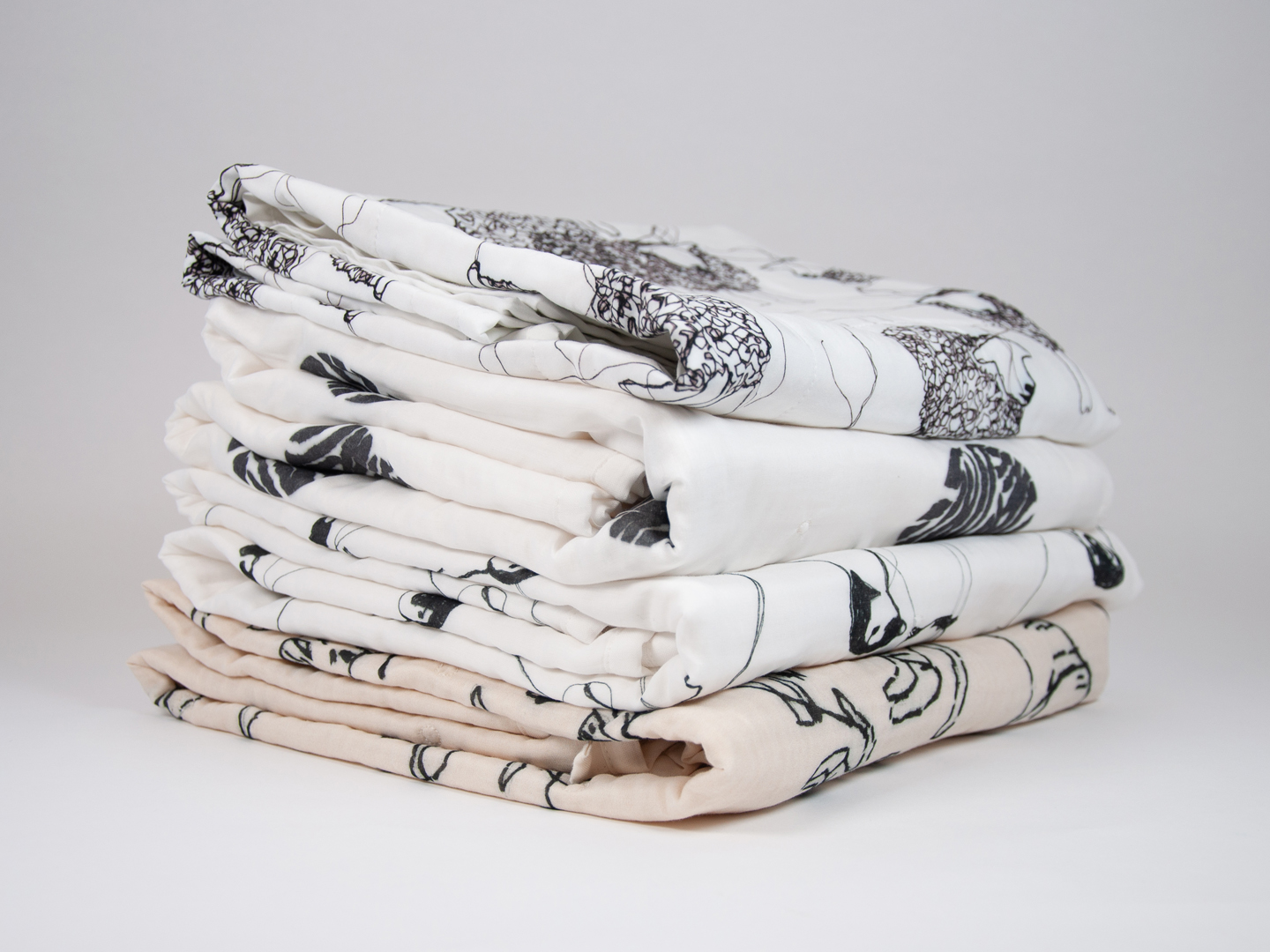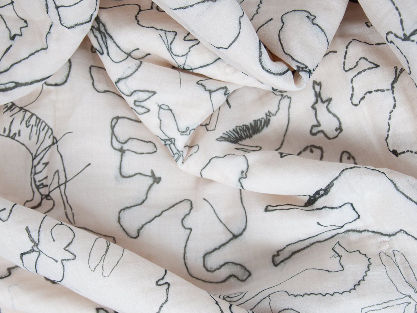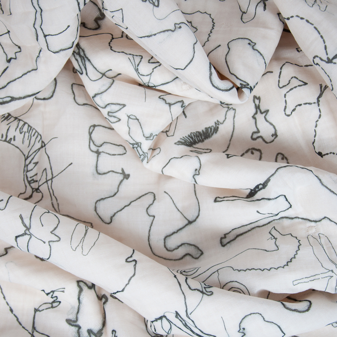 De wikkeldoeken van Fabel dragen alle woorden, waarden en intenties uit waar Fabel voor staat. Handgemaakte borduurpatronen van dieren zijn vertaald naar dessins die gedrukt worden op de zachtste biologische stoffen.