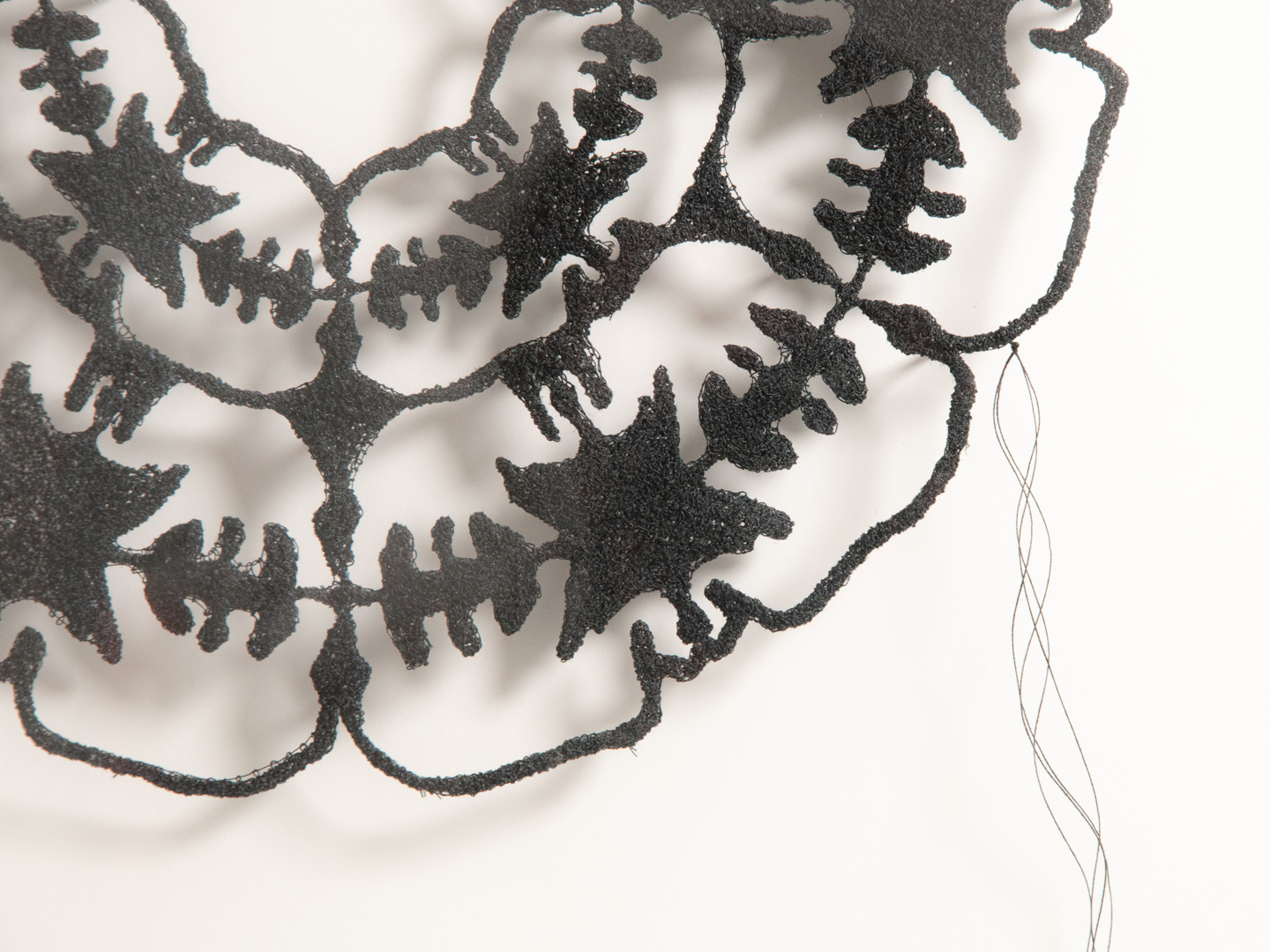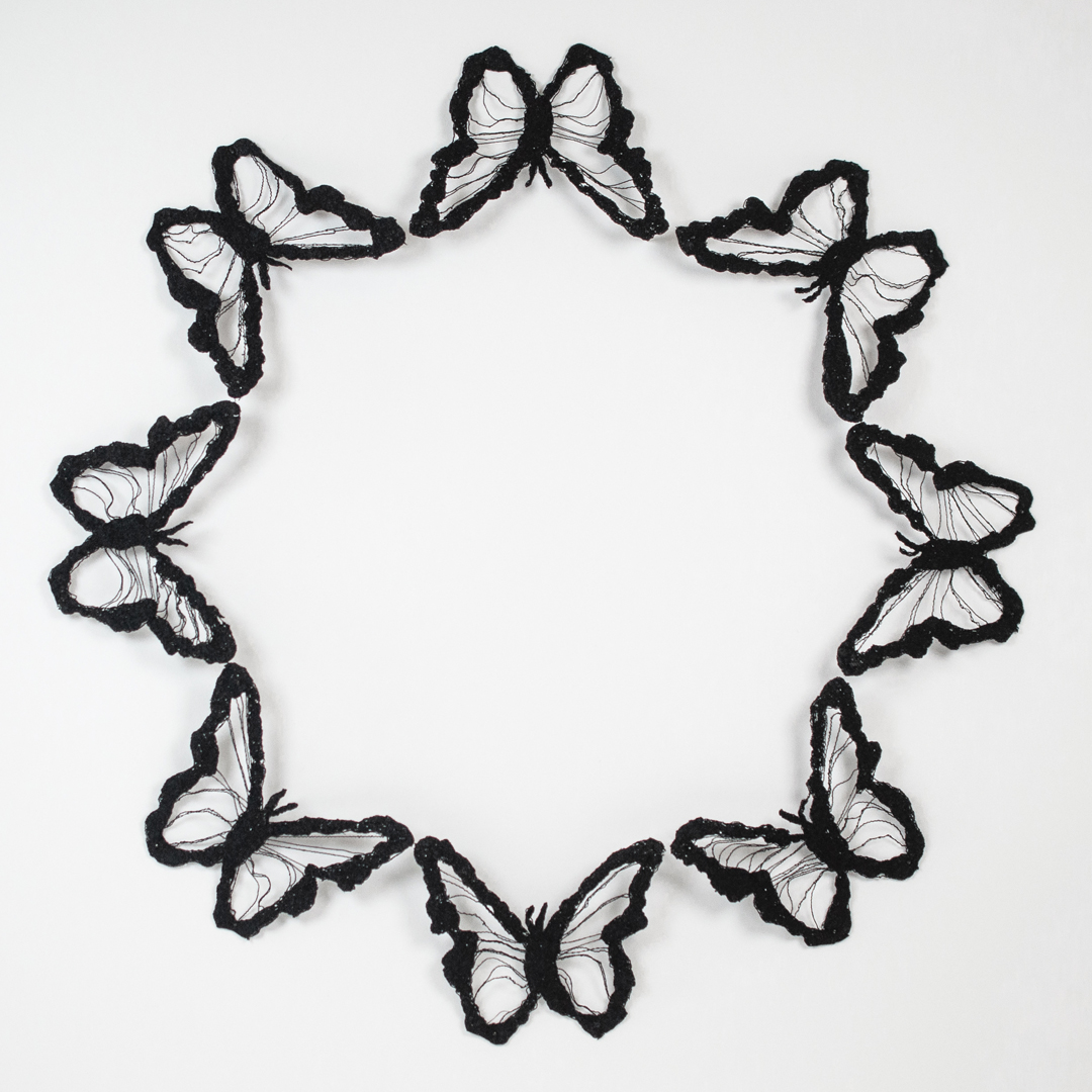 Elk artwork in mijn Free & Framed-collectie is het resultaat van talloze uren achter mijn naaimachine. Met de vrije hand borduurtechniek en wateroplosbare stof borduur ik met uiterste focus en precisie om mijn beoogde beeld te realiseren. Wanneer de stof oplost, blijft alleen het borduurwerk over; als kwetsbaar maar sterk kant, zwevend, licht en transparant. Cirkels en patronen van draad, van duizenden steekjes, als een bevroren moment van iets wat eerder in beweging was. Het voelt alsof er iets magisch is gebeurd.