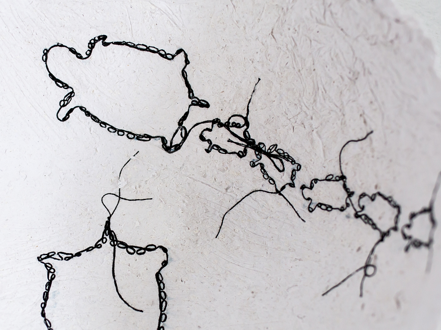 De installatie die ik heb gemaakt van mijn Sen Stitches, mijn duizend en meer steekjes, is geïnspireerd op de wenslantaarn of wensballon. De wenslantaarn is een symbool voor het loslaten van zorgen, het herdenken van dierbaren, het vieren van liefde en leven, en het uitzenden van wensen en gebeden naar het universum.