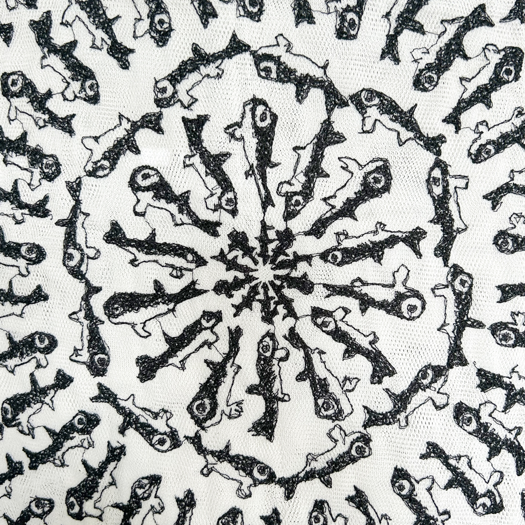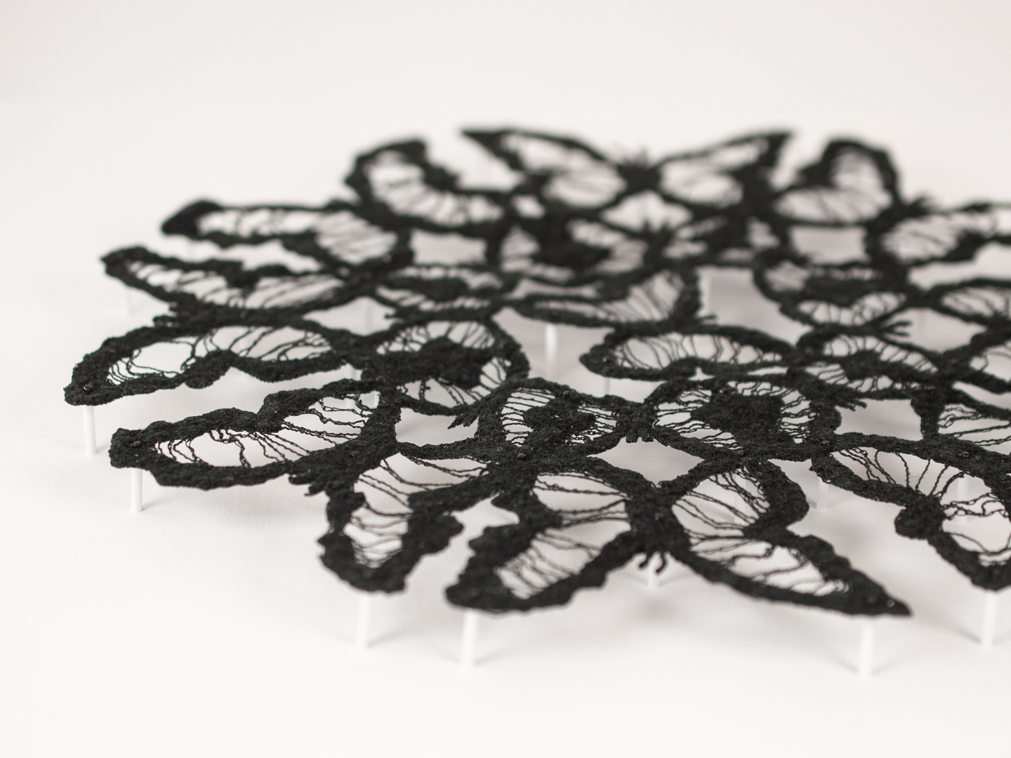 Mijn patronen vertalen de harmonie die overal in de natuur en het universum bestaat - dezelfde harmonie die wordt samengevat in het oude Griekse woord 'Kosmos'. Voor mij is dit de mooiste en meest betoverende transformatie: van draad naar vorm, van beweging naar verstilling.